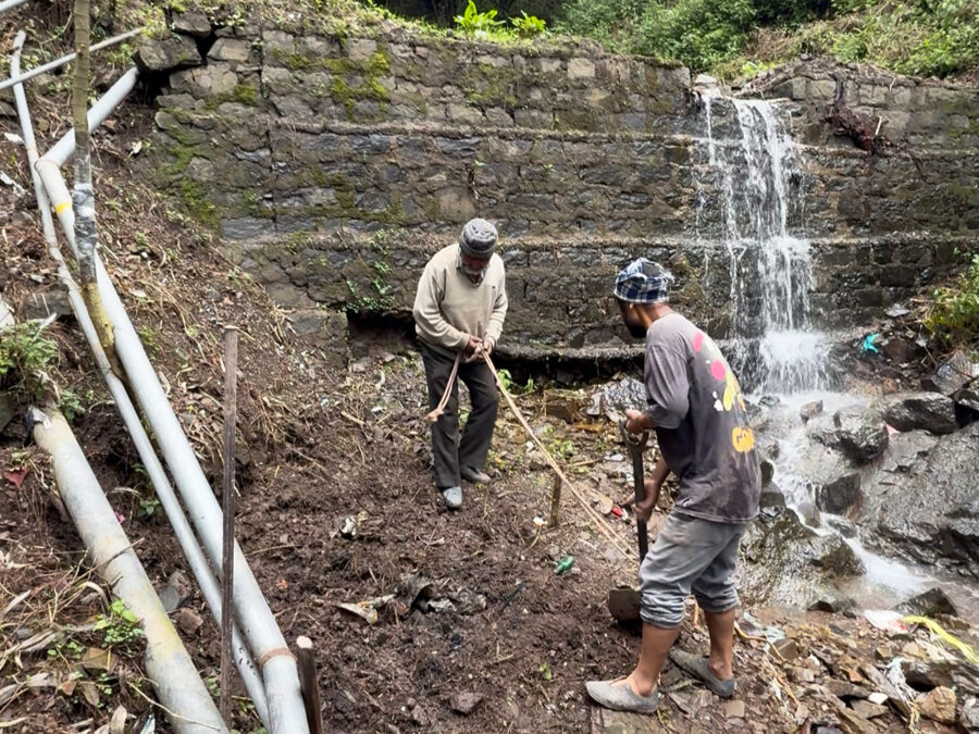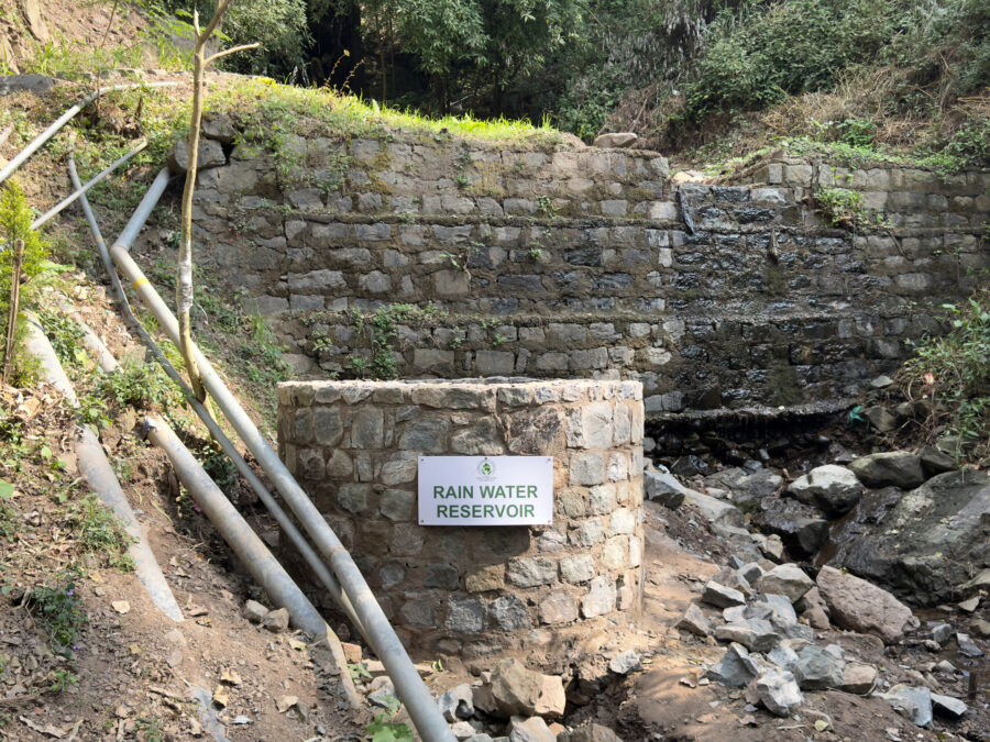 Kheel Jasli's rainfall is seasonal and increasingly unpredictable. During the dry months, young plantings require regular watering — but carrying water to a hillside garden from external sources is labour-intensive, expensive, and ultimately unsustainable.